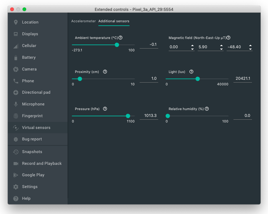 ⌘⇧V로 다양한 센서들의 값을 조절할 수 있습니다.