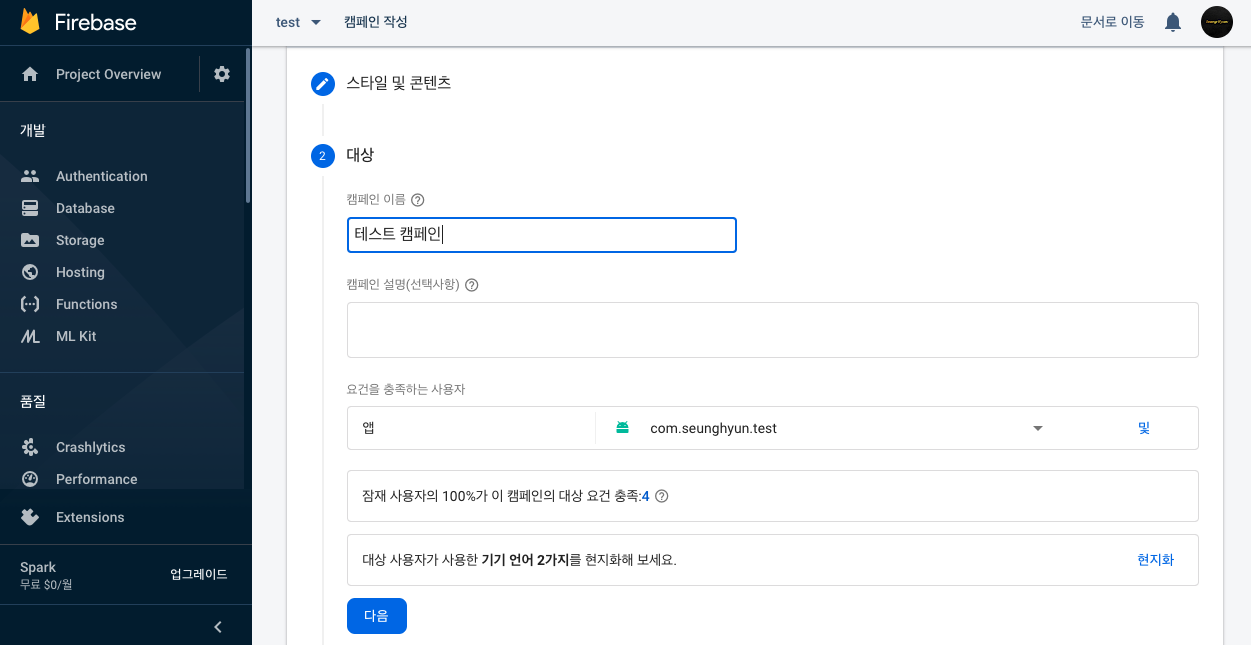 - 캠페인 이름 : 사용자가 보는 이름이 아니라 콘솔에서 개발자가 확인하는 이름입니다.